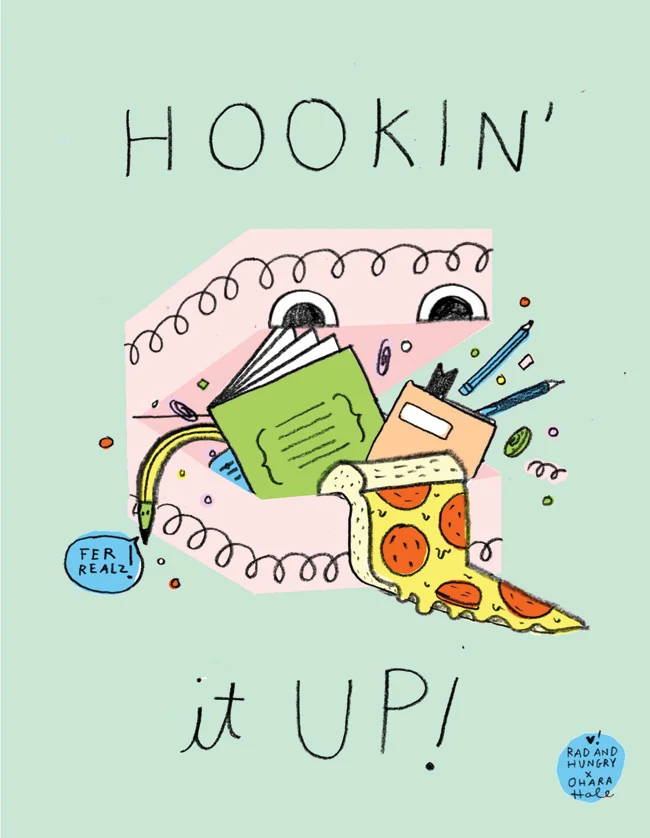 This year’s artist – Ohara Hale! A massively talented graphic designer / illustrator / musician / all-around badass. She sings, she draws, she snaps photos, she loves pizza (ummm, hello!!!). Oh, and if you got a growing artist in the house? Check out the rad coloring book, Outside the Lines, which features some of her illustrations. We’re so excited that Ohara Hale took time out of her super crazy schedule to collab with us! (Check the print – how many goods do you spy from this past World Tour?)